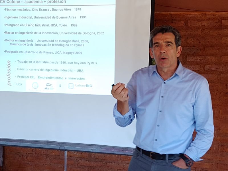 El profesional aportó sus conocimientos y experiencias a los y las participantes del Campamento, ya que cuenta con una extensa trayectoria en innovación y vinculación tecnológica: “Estos dos días de trabajo con 24 personas de la Facultad fueron muy productivos en cuanto a las consignas que se presentaron y se debe seguir haciendo el campamento porque aporta mucho a la comunidad universitaria. Entre lo perfecto y lo que no hay existen varias cuestiones interesantes. Agradezco la invitación y me gratifica ser parte de esta actividad al compartir mis conocimientos y experiencia con ustedes”, explicó el Dr. Cofone.