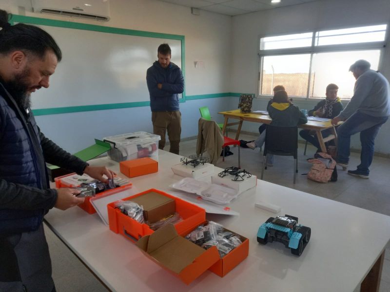 Carlos: Eso es lo interesante, poder ayudar a mejorar. La institución tenía algo pendiente y pudimos resolverlo. Se trata de una serie de equipamientos en electrónica que recibieron por parte de la Nación y no los podían aprovechar, ya que no habían docentes que les pudieran enseñar a utilizarlos. Eran drones, brazos robóticos, impresoras 3D y kits de aprendizajes de electrónica.
