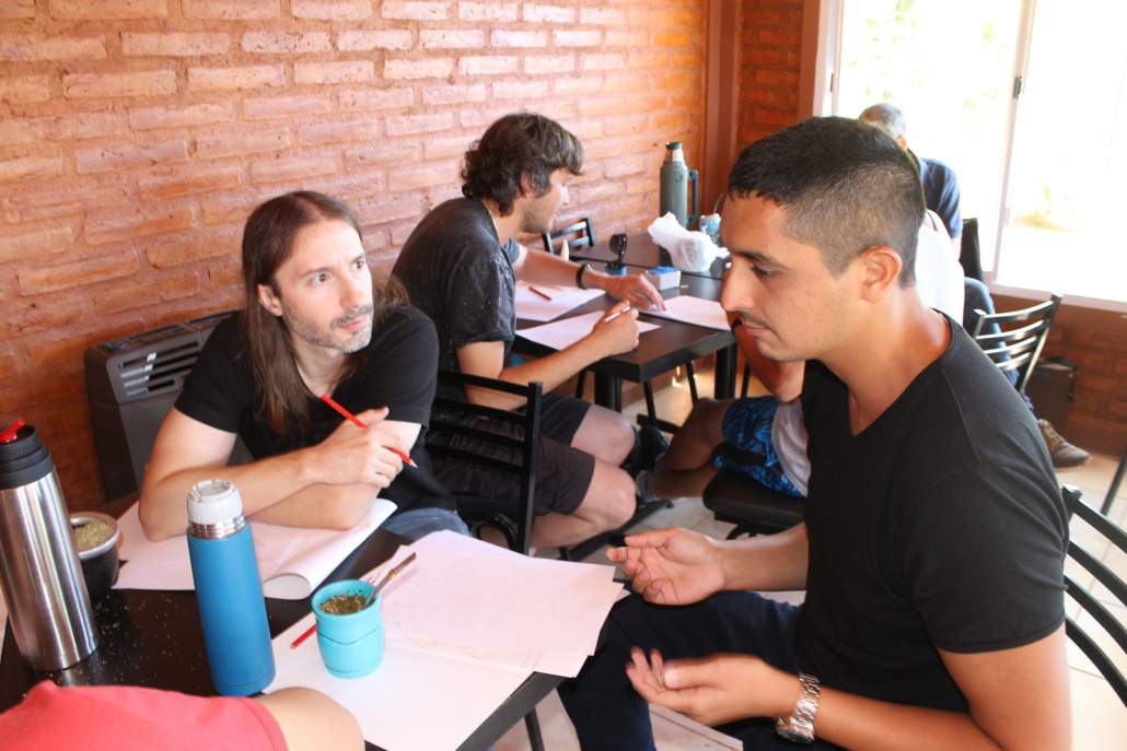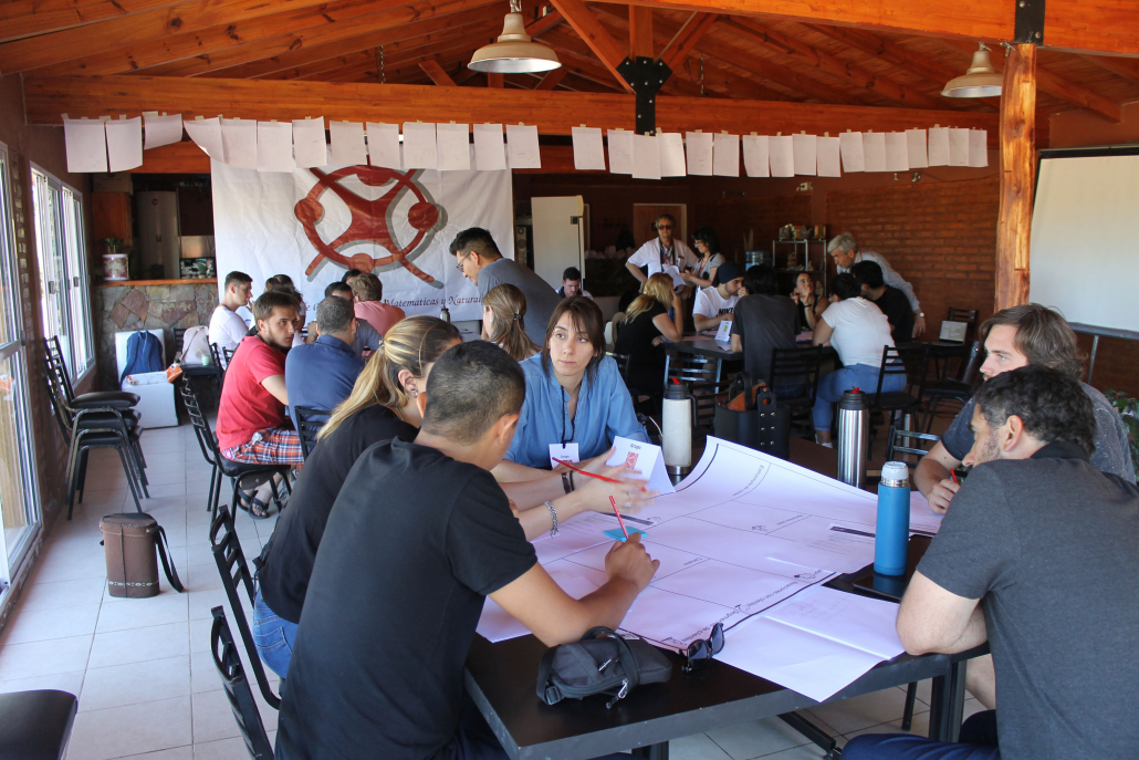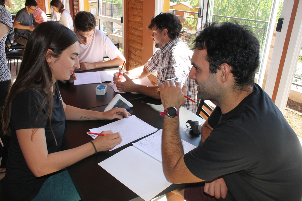 Los y las participantes trabajaron en dinámica grupal referida a la formación de equipos. Luego, se conformaron 5 equipos multidisciplinarios que desarrollaron sus actividades durante las dos jornadas con una propuesta común para todos.