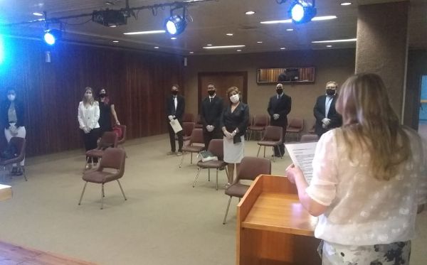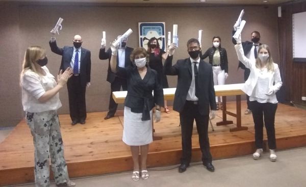 La ceremonia se realizó cumpliendo los protocolos de distanciamiento y sanitización en el Microcine de la Universidad Nacional de San Luis.