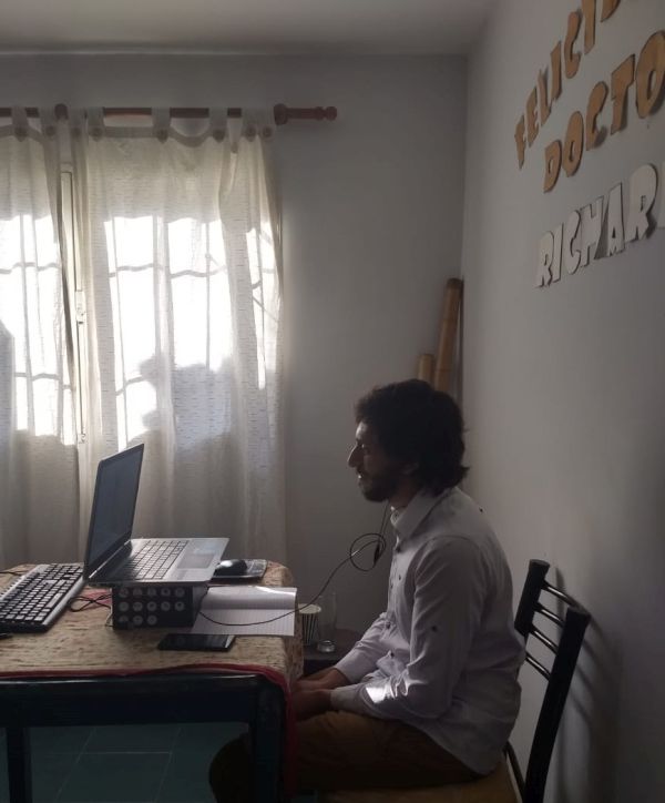 La Tesis se vivió de manera especial, ya que por la contingencia originada por el COVID-19 las defensas de posgrado con modalidad virtual están normadas por RR 400/20 y por un Protocolo Interno confeccionado por la Secretaría de Ciencia y Técnica de la Facultad. Este protocolo requiere la aceptación del tesista, directores y jurado para proceder a la defensa virtual.