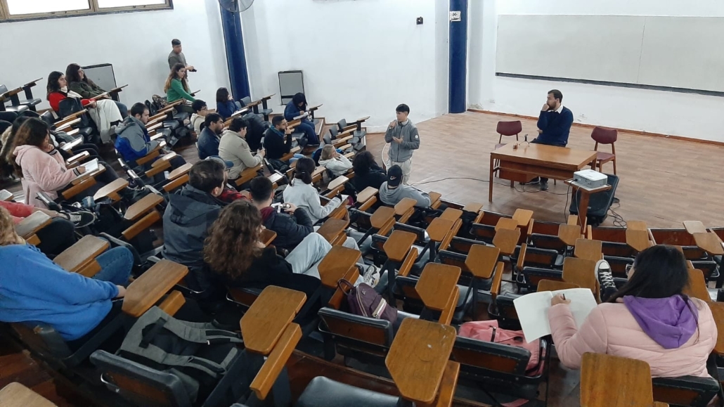 Francisco destacó a lo largo de toda su presentación la centralidad del trabajo en equipo. Luego de relatar una serie de actividades que convocaron a estudiantes de distintas carreras de la Facultad, los y las integrantes del Centro, fueron contando a los/as presentes cómo cada uno/a fue potenciando sus habilidades de liderazgo al tener que asumir distintas responsabilidades de participación estudiantil.