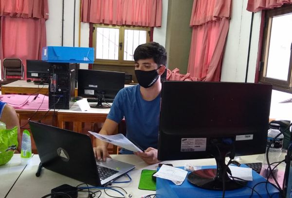 Personal nodocente del Departamento de Alumnos de la Facultad de Ciencias Físico Matemáticas y Naturales se encuentra trabajando en el Bloque II (Sala de computación de planta baja) para facilitar el acceso a los/las Ingresantes 2021.