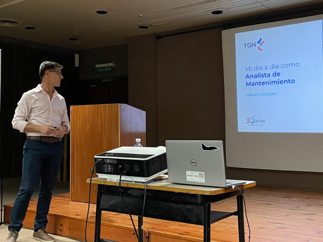 En la presentación también participó Emilio Fassero, quien es estudiante egresable de la Ingeniería Electrónica en la Facultad y actualmente se desempeña como Analista de Mantenimiento en TGN. Emilio ahondó sobre las principales tareas que desarrolla al interior de la empresa y remarcó las contribuciones de la Universidad para su actual desarrollo profesional.