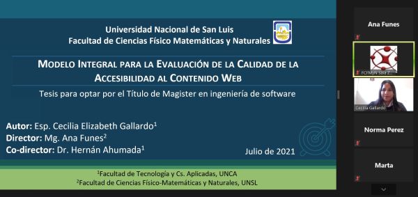 La Esp. Cecilia  Elizabeth GALLARDO defendió su tesis de la “Maestría en Ingeniería de Software”, carrera de posgrado de la Facultad de Ciencias Físico Matemáticas y Naturales (FCFMyN), que se dicta en el Departamento de Informática.