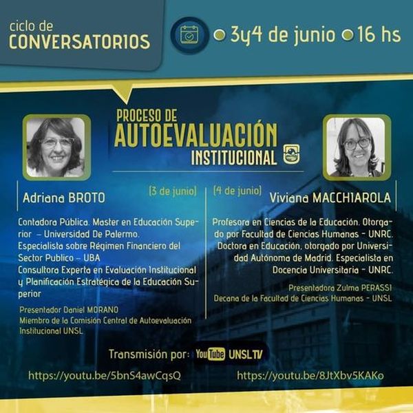 Sumado a ello, se prevé un Ciclo de Charlas que dará inicio el próximo 3 de junio, con el objetivo de reforzar y facilitar el proceso de Autoevaluación Institucional UNSL 2021.