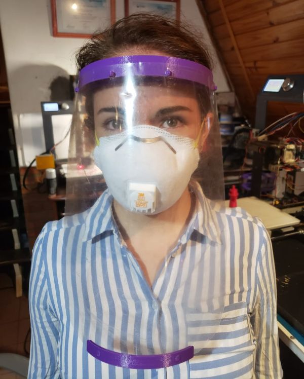 Los creativos “makers” están realizando los protectores faciales con impresoras 3D que tienen en sus hogares. Estas impresoras realizan el soporte que sostiene el protector en la cabeza del profesional de la salud. A su vez, esta mascarilla se compone de tres piezas: el soporte, el protector con láminas de acetato o de láminas de radiografía, y las bandas elásticas.