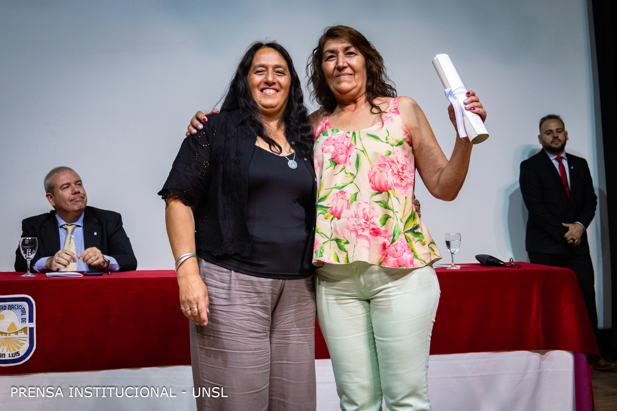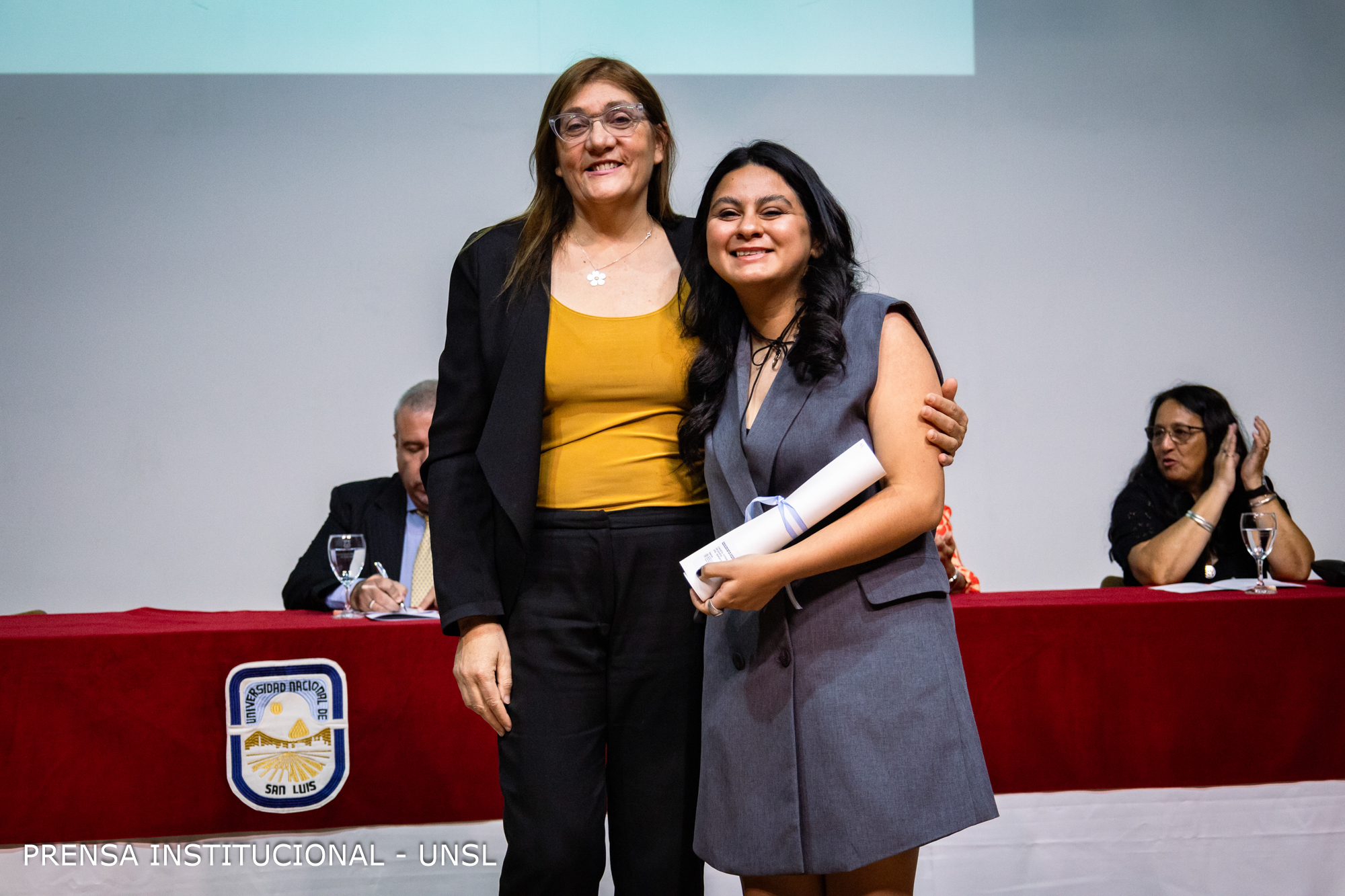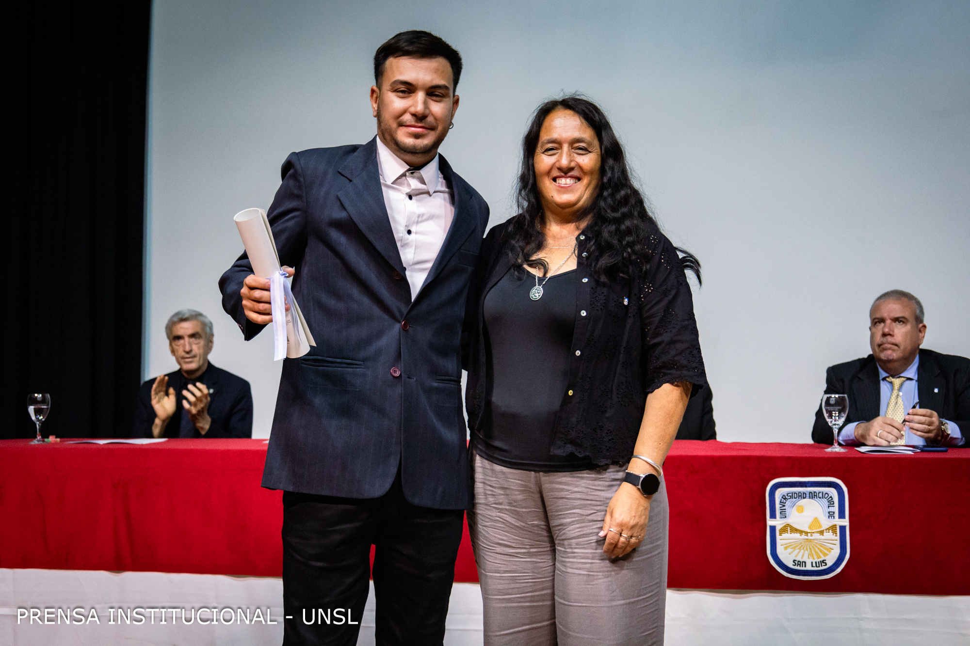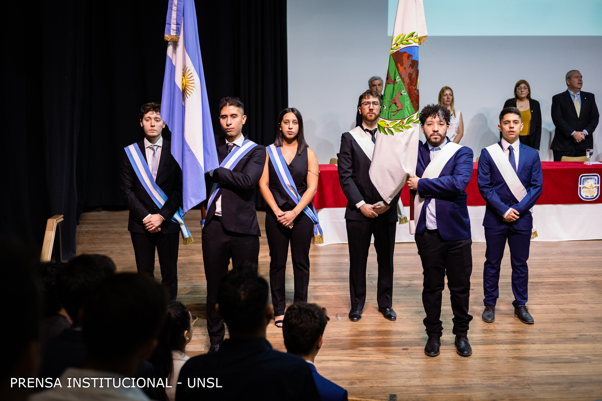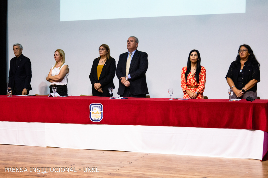La mesa académica estuvo presidida por el Rector de la Universidad Nacional de San Luis (UNSL), CPN. Víctor Moriñigo e integrada por la Decana de la FCFMyN, Dra. Marcela Printista; la Secretaria Académica de la UNSL, Mg. Rosa Lorenzo; la Secretaria de Posgrado de la UNSL, Dra. Nora Reyes, la Secretaria de Ciencia y Técnica de la Facultad, Dra. Verónica Gil Costa y el Secretario de Innovación y Desarrollo de la FCFMyN, Mgtr. Vicente Fusco.