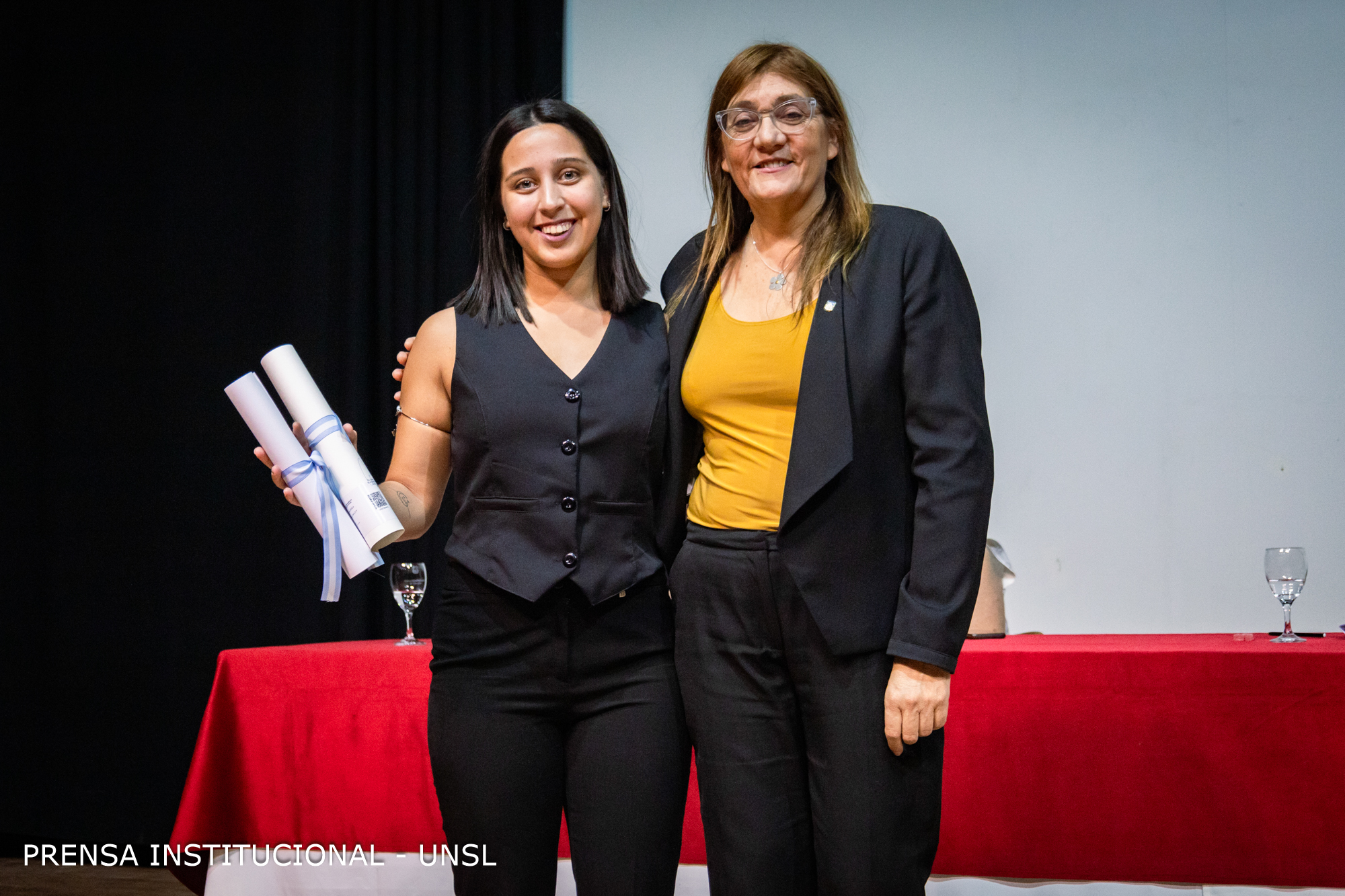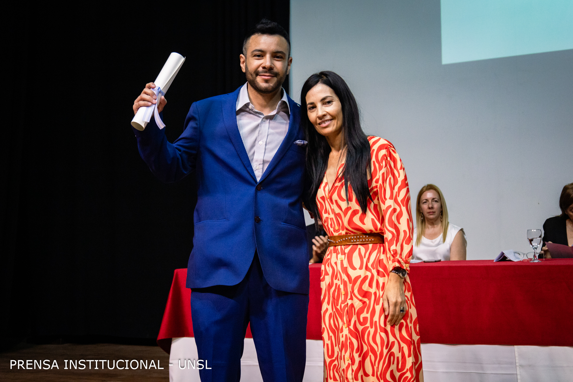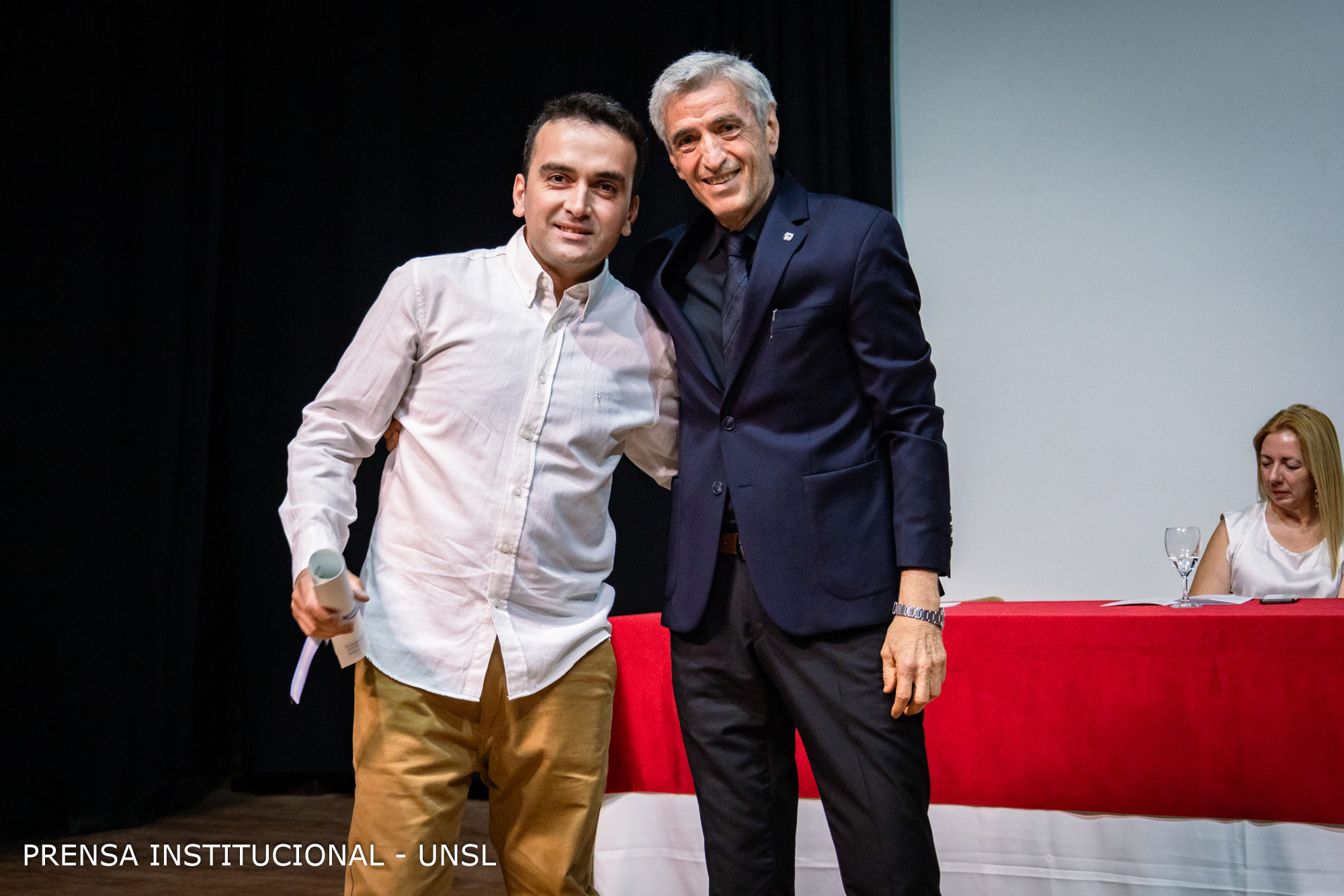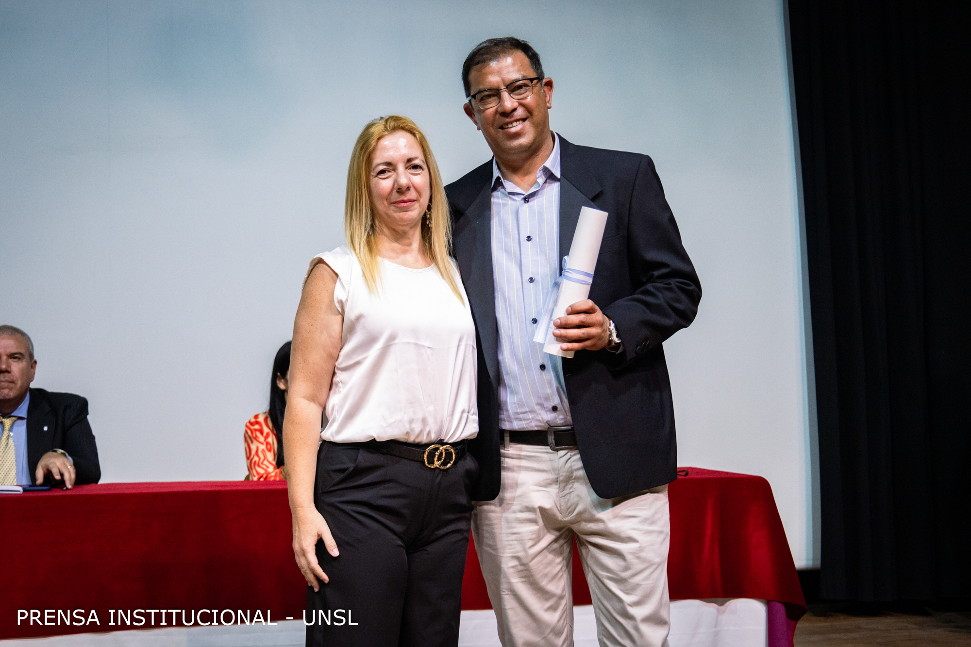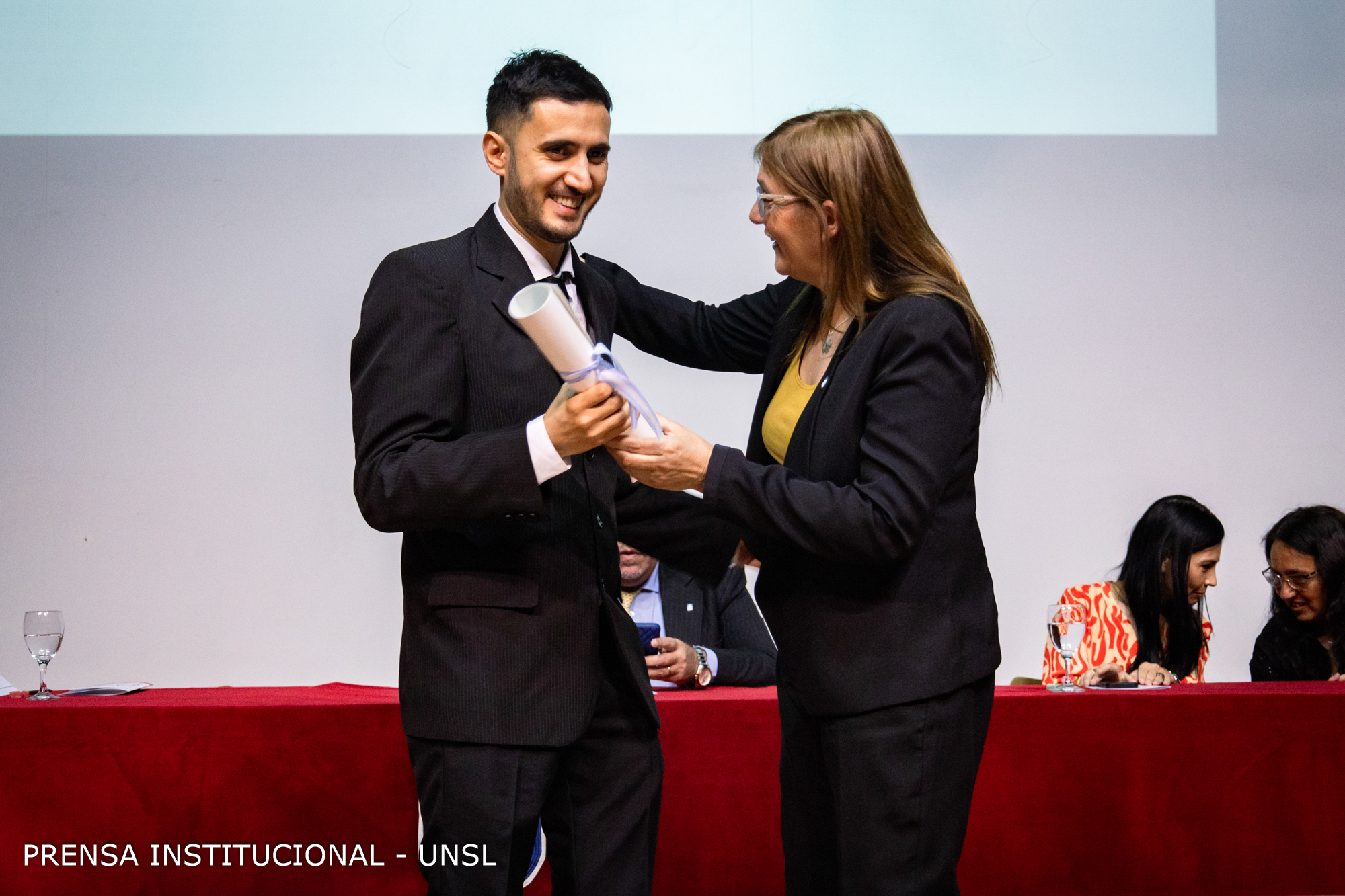 La mesa académica estuvo presidida por el Rector de la Universidad Nacional de San Luis (UNSL), CPN. Víctor Moriñigo e integrada por la Decana de la FCFMyN, Dra. Marcela Printista; la Secretaria Académica de la UNSL, Mg. Rosa Lorenzo; la Secretaria de Posgrado de la UNSL, Dra. Nora Reyes, la Secretaria de Ciencia y Técnica de la Facultad, Dra. Verónica Gil Costa y el Secretario de Innovación y Desarrollo de la FCFMyN, Mgtr. Vicente Fusco.