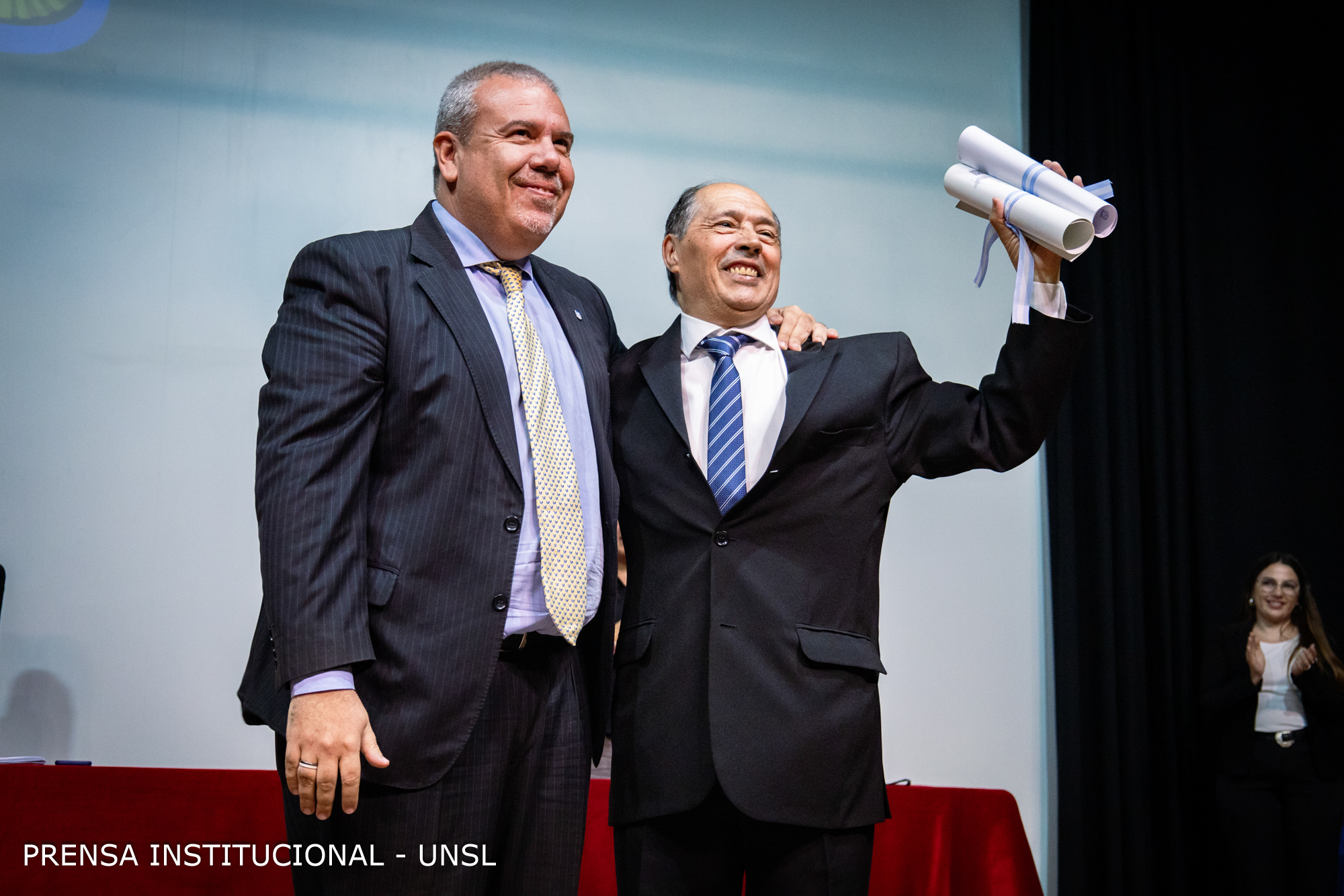El rector de la UNSL también dejó unas palabras para los egresados expresando “hoy ustedes han demostrado la razón de ser de la Universidad Pública Argentina. Creo que hoy vale la pena destacar centralmente que ustedes han llegado a lograr el objetivo por el cual vinieron, y eso no es menor (…) vale la pena reconocer el esfuerzo de sus familias y amigos en este logro (…) hoy hay que detenerse a felicitarse y felicitarlos por todo lo que han logrado (…) y recuerden… que nunca habrá verdadera libertad sin educación”.