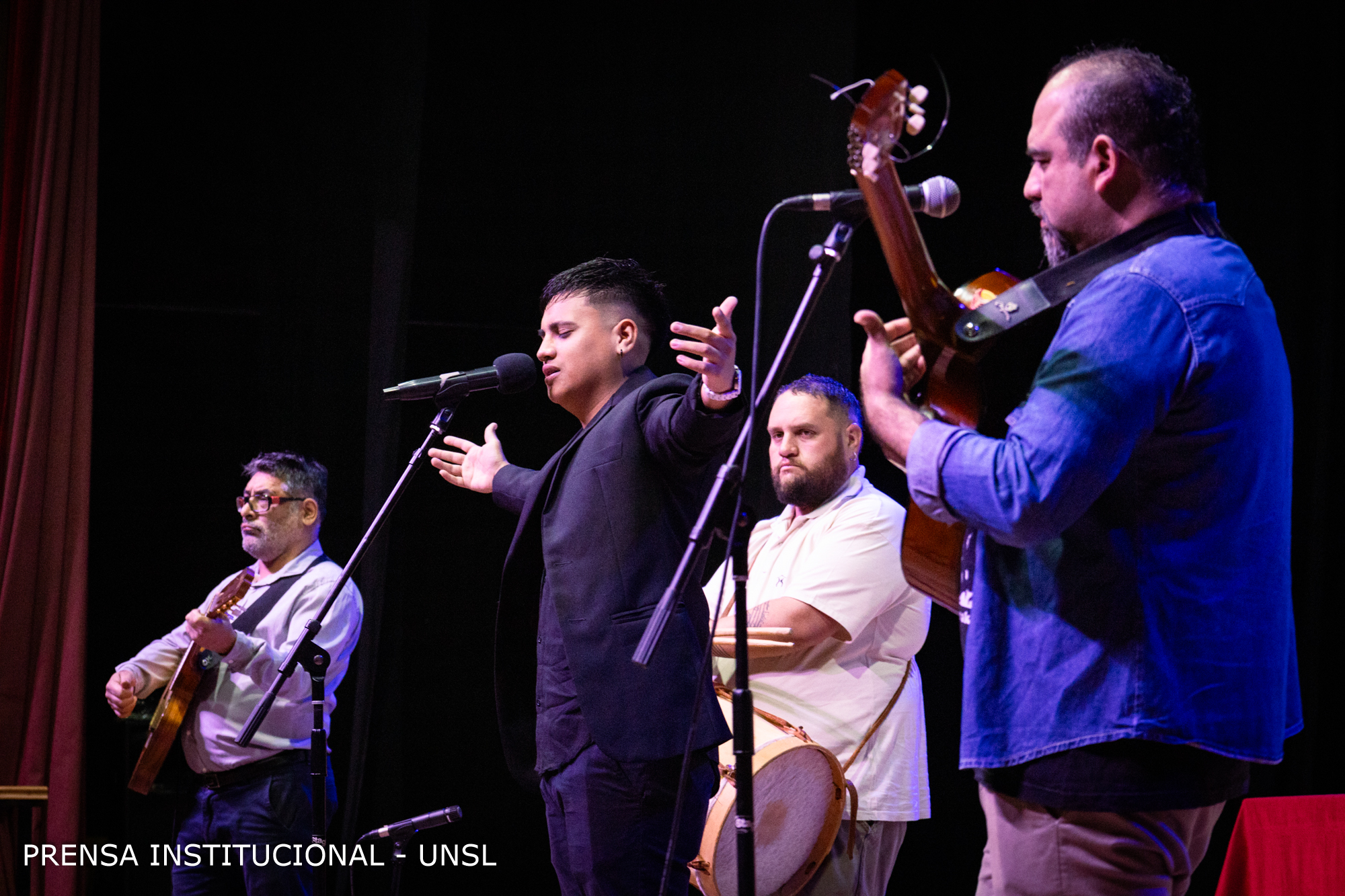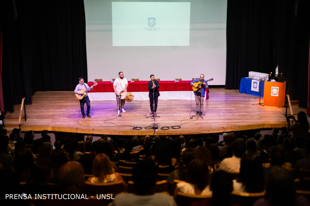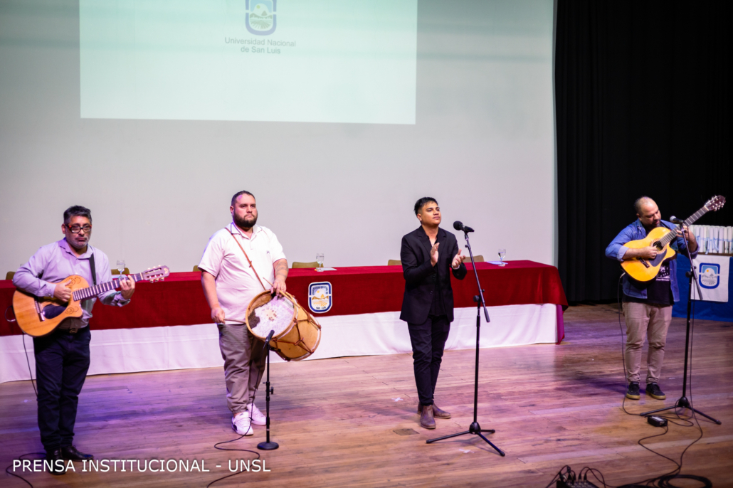 El acto comenzó con un número musical protagonizado por el grupo “Decires Cuyanos” pertenecientes al Staff artístico del Ministerio de Turismo y Cultura. Los músicos deleitaron a los presentes con la interpretación de un sentido repertorio de Folclore Tradicional.