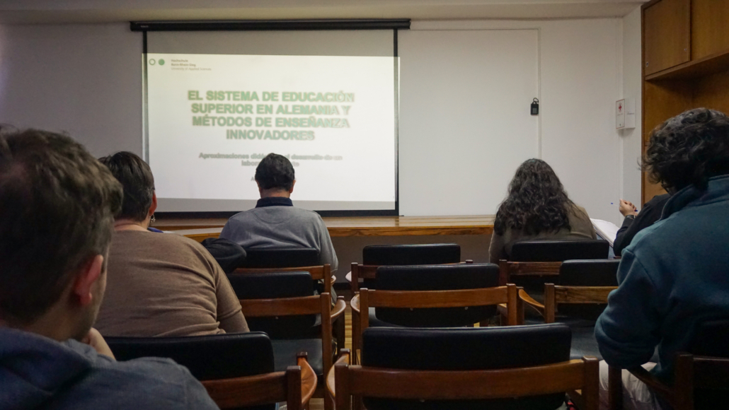 Durante el encuentro, la profesora Schwandt compartió su experiencia en el sistema de educación superior alemán, con especial foco en el modelo de universidades de ciencias aplicadas y el desarrollo de laboratorios remotos, una estrategia didáctica que permite ampliar el acceso a prácticas tecnológicas desde cualquier lugar del mundo.