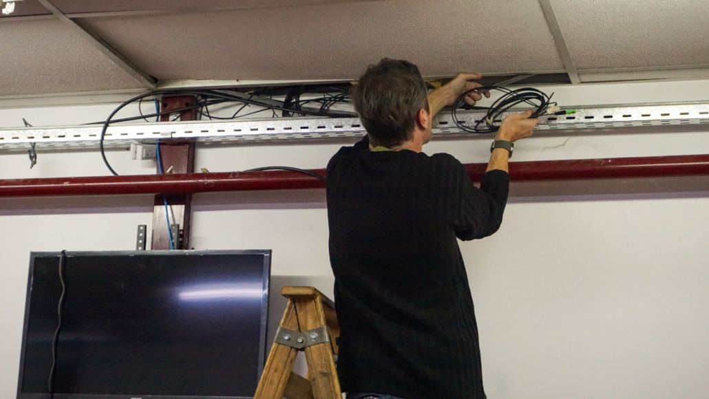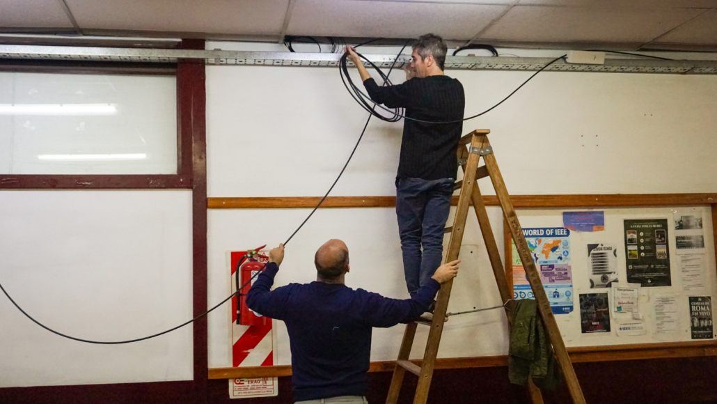 La primera etapa del proyecto, que se ejecuta conforme a las disponibilidades presupuestarias establecidas por Rectorado, incluye el tendido de la red GPON en Planta Baja y el 1° Piso del Bloque II.