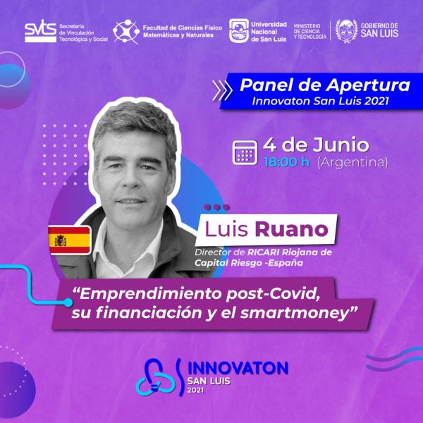 A las 18:00 (hora Argentina) disertará Luis Ruano, Director de RICARI (Riojana de Capital Riesgo- España) sobre el tema “Emprendimiento post-Covid, su financiación y el smarthmoney”.