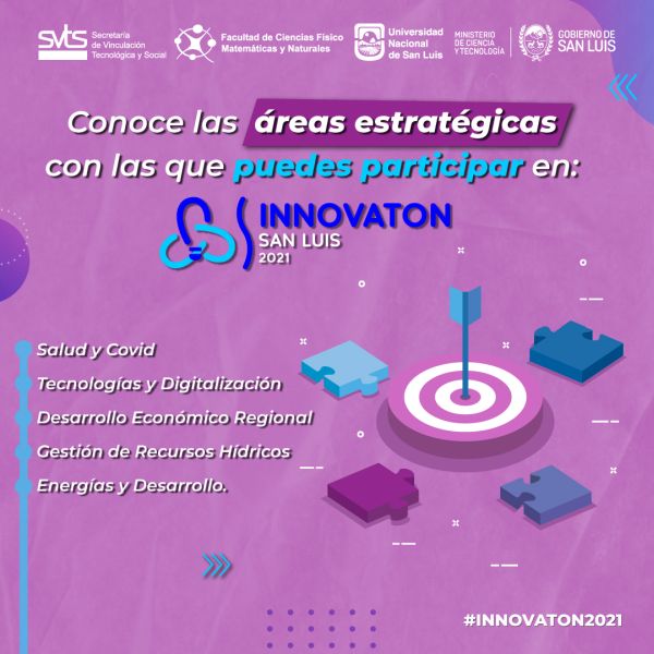 Innovaton San Luis 2021 es una competencia de inteligencia colectiva para generar soluciones creativas a desafíos reales y la Facultad de Ciencias Físico Matemáticas y Naturales es una de las instituciones organizadoras junto con la Universidad Nacional de San Luis (UNSL), Ministerio de Ciencia y Tecnología de la provincia de San Luis y la Secretaría de Vinculación Tecnológica y Social de la UNSL.